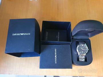 Orologio da uomo nuovo mai utilizzato EA Emporio Armani quadrante nero, ghiera diametro 43mm e bracciale in acciaio inossidabile, movimento al quarzo. Resistenza all'acqua di 30 metri. Consegnato con scatola originale e garanzia ufficiale.