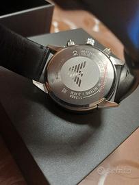 Vendo bellissimo orologio uomo emporio armani, movimento quarzo, cronografo, cassa acciaio 43 mm, quadrante nero, cinturino in pelle nera, resistenza acqua 3 atm.