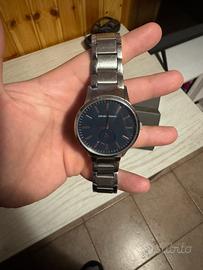Come da titolo vendo orologio Emporio Armani. Conturino in acciaio e meccanismo al quarzo, resistente all’acqua. L’orologio ha i suoi anni e il cinturino presenta un po’ di graffi (anche se molti sono superficiali, nella foto l’ho messo in controluce per metterli in risalto), il quadrante e in buone condizioni.