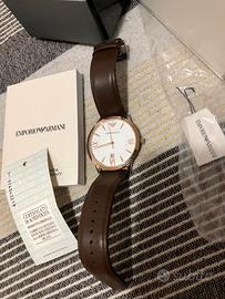 Orologio da 42mm con quadrante bianco opaco,,cassa in acciaio ossidabile e placcatura oro rosa,cinturino in pelle marrone,movimento al quarzo a tre sfere con datario, 5ATM, fornito di tutto il corredo originale come da foto,indossato una sola volta… cosa aspetti?