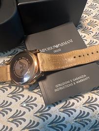 Orologio Donna Armani completo di istruzioni garanzia intatte e confezione composta da scrigno, scatola cartone e film protettivo in plastica colore nero. Il prodotto colore oro ramato in acciaio garantito 50 mt/5 atm com marchio CE è usato, e presenta usura da utilizzo leggera. Il cinturino in vera pelle è indurito ma utilizzabile. Vendesi per inutilizzo.