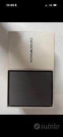 cronografo al quarzo, cassa e bracciale in acciaio inossidabile, quadrante nero con indici oro. Completo di confezione originale, manuale e garanzia originale Emporio Armani. ✅ Cassa rotonda in acciaio argentato ✅ Quadrante nero con sottoquadranti cronografo ✅ Bracciale in acciaio a maglie ✅ Logo aquila Emporio Armani sul quadrante ✅ Box originale + libretto istruzioni e garanzia ✅ Condizioni ottime
