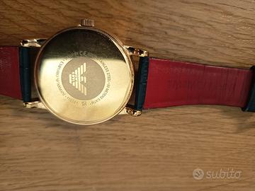 orologio emporio Armani oro. cinturino blu pelle . fodera Rossa usato pochissimo