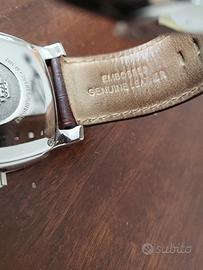 Orologio Armani con cinturino in vera pelle color marrone. Stato: come da foto. Vetro con piccolo segno. Modello AR 5803 - acciaio e vera pelle. Resistente all'acqua 50 mt. No scatola.