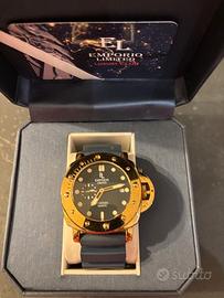 Orologio Emporio Limited Modello Firenze cronografo in oro, nuovo mai usato, cinturino in gomma blu