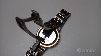 Bicolor in acciaio placcato oro, calibro ETA di manifattura con movimento al quarzo, cassa sottile, diametro 25 mm esclusa corona.