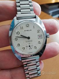 Orologio EVELIX anni 60-70 uomo in acciaio orologio assegnato su licenza alle Ferrovie dello Stato Perfettamente funzionante, carica manuale, bracciale a scatto, 17 rubini, antimagnetico, incabloc, contasecondi, con leggero graffio sul vetro pezzo interessante da collezione
