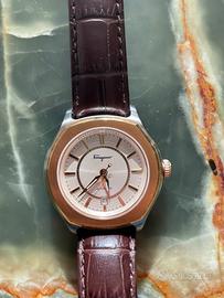 Vendo orologio Salvatore Ferragamo autentico, movimento automatico (Automatic-Self-Wind ETA 2824-2) vetro sapphire anti riflesso, acciaio e placca d'oro intorno al quadrante, cinturino in pelle marrone simil coccodrillo, perfettamente funzionante e usato pochissimo come si vede dall'assenza di usuare sui buchi del cinturino. Ideale come regalo per le prossime feste. Ritiro a mano a Saronno o spedizione a carico dell'acquirente. Prezzo poco trattabile.