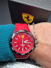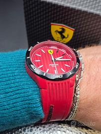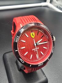 Bellissimo orologio da polso Ferrari modello della linea Pista, fer0830781 realizzato con cassa in acciaio da 44 mm e cinturino in silicone di colore rosso. Alimentato da un movimento al quarzo questo modello si presenta con un quadrante rosso con indici bianchi e neri.