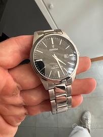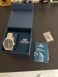 Vendo per inutilizzo Orologio al quarzo da uomo Festina Classics F20511/4 diametro 40mm comprato il 23/12/25 da Stroili pagando 89€, come si vede anche dalla foto sul sito online. Full set completo di scatola, documenti, garanzia e scontrino. Indossaro 8/9 volte quindi condizioni ottime, quadrante e vetro perfetti senza minimo segno di usura, sembra nuovo. Presenta solamente leggeri graffi superficiali nella zona della chiusura.