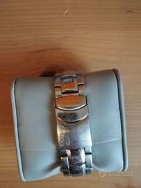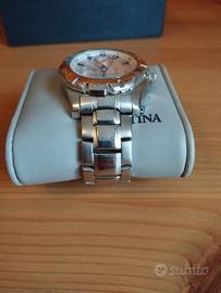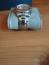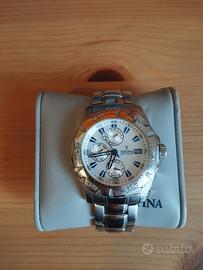 Orologio Festina F16242/7 usato in vendita. Condizioni estetiche buone come si evince dalle foto, presenti normali segni di usura. Ghiera da una parte gira bene ma dall'altra fa più fatica. Batteria da sostituire. Compresa scatola originale e cinturino marrone.