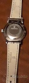 Vendo orologio Festina donna (F20691/2) con garanzia valida ancora per molto tempo, con lo scontrino fiscale e la sua scatola originale. Il suo prezzo di listino è di 89 euro. Lo cedo a 50 euro. P.S l'orologio ricorda molto quelli del passato perché ha uno stile vintage che lo caratterizza e che è molto bello da vedere.