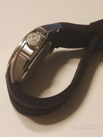 Da mi acollezione cedo questo Grand Diver Festina dall'estetica davvero accattivante, introvabile oggi in questa colorazione molto tecnica nero/arancio è mosso da un Movimento al quarzo Miyota IS13. L'Orologio, senz'altro per polsi importanti (44mm corona esclusa!), è in eccellenti condizioni estetiche e N.B. a differenza di quello rappresentato in foto annuncio è stato ri-corredato di cinturino ad anse curve originale FESTINA in nero trapuntato bianco in silicone con pure clasp originale logata, la batteria è stata appena sostituita per la messa in vendita. _Viene Fornito solo orologio con cinurino e fibbia originali..praticamente pari al nuovo!