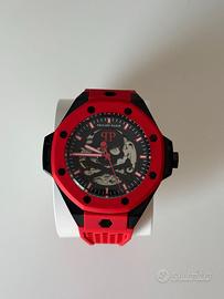 L'orologio ha una cassa in acciaio inossidabile con finitura opaca che lo rende un vero e proprio richiamo visivo.