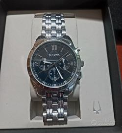 Vendo bellissimo orologio Bulova cronografo elegance, quadrante nero a raggi, numeri romani limited edition. In perfette condizioni, completo di scatola originale e maglie di scorta.