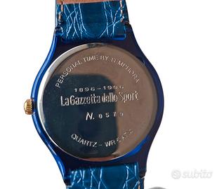 Orologio al quarzo da collezione prodotto a tiratura limitata per il centenario della Gazzetta dello Sport nel 1996. Confezione originale con cinturino di riserva. Sempre rimasto nella custodia