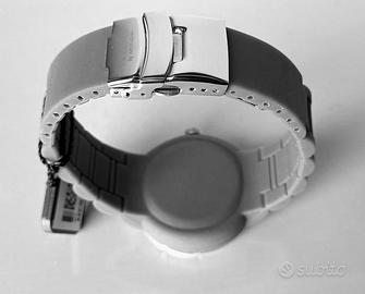 Orologio College by Mondia in silicone, quadrante analogico con sfere ed indici luminescenti, cassa in lega di acciaio diametro 38 cm., cinturino in silicone e chiusura deployante, resistente all'acqua 5 ATM con astuccio,scatola e libretto originale, nuovi ancora con le pellicole di protezione, colore Grigio Chiaro. Per qualsiasi informazione e/o richiesta, resto a disposizione.