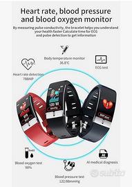 ECG e Orologio da Polso cardiofrequenzimetro PPG Orologio da Fitness per attività Fisica Fitness Tracker Step Counter Smart Braccialetto Schermo a Colori e IP67 Impermeabile
