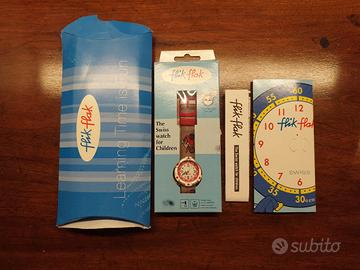 vintage anno 2004 perfetto per bambini orologio flik flak in ottime condizioni, movimento svizzero, funzionante e marciante con ghiera girevole tipo sub. batteria cambiata di recente. spedizioni rapide