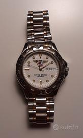 Giorno e data, secondi centrali, fondello serrato a vite.