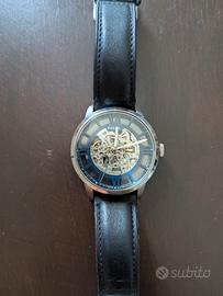 Orologio Townsman Foaail con meccanica visibile trasparente e cinturino in pelle blu. Perfette condizioni.