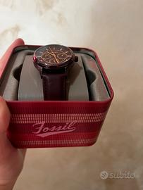 orologio multifunzione da donna Fossil con cinturino in pelle tonalità vinaccia, MAI USATO