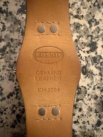 Orologio da polso Fossil con cinturino in pelle nera e cassa in acciaio argentato.