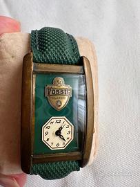 In vendita splendido orologio Fossil Classic, un pezzo dal design vintage ricercato e non comune. Caratterizzato da una cassa rettangolare bombata con finitura in ottone brunito, che dona al pezzo un fascino "industrial" e d'altri tempi.