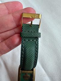 • Cinturino: Originale in tessuto tecnico verde scuro con trama a rilievo, robusto e coordinato al quadrante.