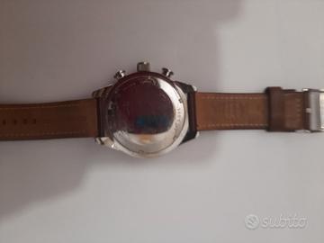 Bellissimo orologio Fossil cronografo da uomo, con cinturino in pelle marrone e cassa in acciaio argentato.