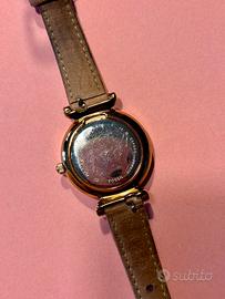 Orologio Fossil da donna, elegante e raffinato. Cassa oro rosa, cinturino champagne metallizzato, funzionante e in buone condizioni.