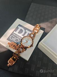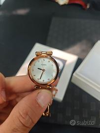 vendo orologio della Fossil edizione gioiello con cinturino in acciaio color oro e quadrante con brillanti all'interno in buono stato usato veramente pochissime volte