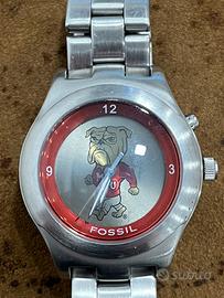 Orologio quartz Fossil con quadrante a cristalli liquidi che al tocvo del pulsante mostra l’immagine di un cane , diametro 38 mm esclusa corona. Orologio raro , il prezzo basso è giustificato dal fatto che non ho le maglie di ricambio e quindi è indossabile per un polso fino a 14-14,5 cm di circonferenza.