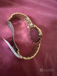 Il quadrante è di colore nero, con dettagli in oro rosa.