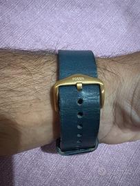 Vendo Orologio Fossil The Commuter FS5274, Analogico Solo Tempo con Datario movimento al Quarzo, Cassa (diam. 42 mm) in Acciaio Inox Rose Gold, Cinturino in Pelle Blu e Quadrante Blu con Indici a Bastone e Numerici e Lancette con dettagli White Luminous. Resistenza all’acqua fino a 5 ATM