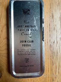 Vendo orologio da polso del marchio Fossil completo di caratteristica e collezionistica scatola in lamiera a forma di auto vintage. La confezione, decorativa e rara da trovare in buone condizioni, è il vero valore aggiunto di questo pezzo.
