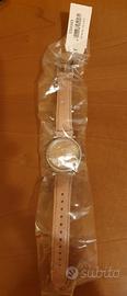Cinturino in pelle rosa polvere, diametro 35 mm, movimento al quarzo.