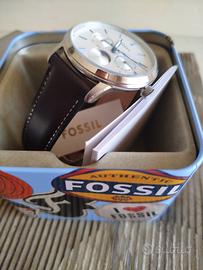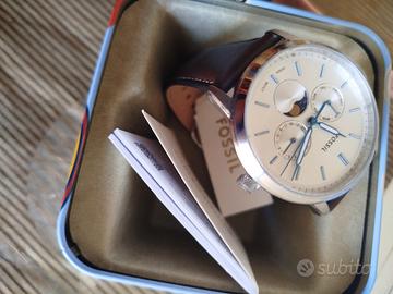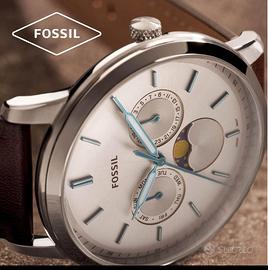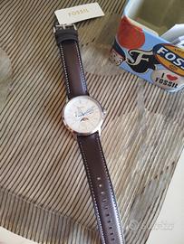 Cassa da 42 mm, , cristallo minerale, movimento con fasi lunari e display analogico multifunzione, importato Cassa rotonda in acciaio con quadrante color arGento Bracciale in pelle marrone Resistente all’acqua fino a 50 m: indossabile per nuotare in acque basse