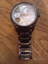 orologio Fossil twist ME1019 Presenta un quadrante color argento con dettagli a vista sul meccanismo automatico. cassa e volontari o in acciaio inossidabile. acquistato nel 2018 e mai indossato