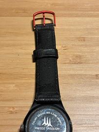 Orologio da polso FRECCE TRICOLORE STENDARDO vintage con cinturino in similpelle scura e fibbia rossa.
