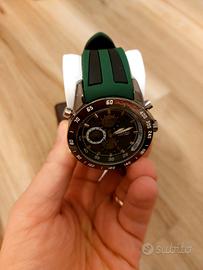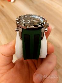 Vendo Orologio Fredric, sportivo da uomo, Modello Dual Time Sport t. Rubber codice 28 pt/289.00, con funzione doppio fuso orario. Ha un look moderno e accattivante. - Cronografo. - Cinturino in silicone verde/nero. - Cassa in acciaio inossidabile. L'orologio è in condizioni nuove, mai indossato,nella sua scatola originale con certificato di autenticità.