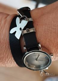 Orologio Furla con ciondolini, cinturino in vera nera. Indossato poche volte e perfettamente funzionante. Lunghezza 39 cm.