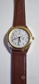 orologio da polso Galileo al quarzo con cassa dorata quadrante bianco e cinturino in pelle marrone qualche segno del tempo sia sull'orologio che sulla scatola originale riceverete quello che si vede in foto