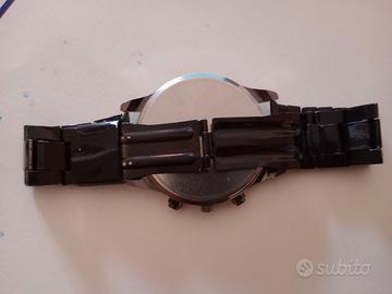 Orologio Geneva unisex. Stile classico eleganrte con numeri romani. Cassa e bracciale neri. Funzionante con pila nuova appena messa. Orologio "solo tempo" in quanto i bottoni del cronografo sono solo estetici. Diametro cassa, esclusa corona, 41 mm. No scatola.