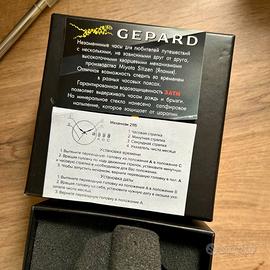 Un orologio indispensabile per chi ama viaggiare, dotato di molteplici movimenti al quarzo indipendenti della ditta giapponese Miyota Citizen. È un ottimo modo per tenere traccia dell'ora in diversi fusi orari. L'impermeabilità garantita fino a 3 ATM gli consente di resistere a pioggia e schizzi. Il vetro minerale è rivestito con vetro zaffiro antigraffio. Questo è un orologio raro del marchio Gepard, acquistato in Russia.