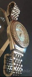 Orologio LOCK4MAN modello TECHNOICE in acciaio. Ghiera con doppia fila di strass. Numeri interni brillantinati e sfondo madreperlato. Con maglie del bracciale in piú. Perfetto. SENZA GARANZIA E SENZA SCATOLA. Prima di spedire metto batteria.