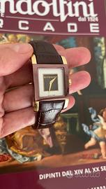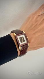 Un raro Givenchy Tank NOS degli anni 2000. Il quadrante è di un'esclusiva combinazione di madreperla e oro, mentre il cinturino è di un profondo e ricco color bordeaux. Questa combinazione crea un effetto incredibilmente elegante. La dicitura NOS (New Old Stock) indica che questo orologio vintage è nuovo di zecca e non è mai stato indossato. • Cassa: 23,5 mm (elegante forma rettangolare). • Movimento: al quarzo Swiss Made. • Cinturino: in pelle originale (160-180 mm). • Condizioni: 10/10 • senza scatola