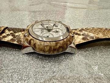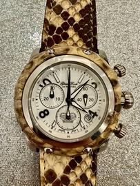 Tipo di display Cronografo Impermeabilità 10 Bar (Nuoto) Colore del quadrante Bianco Diametro 46.00 mm Spessore della cassa 12.00 mm Materiale Cassa Inox Forma della cassa Rotondo Colore della cassa Acciaio Vetro Zaffiro Info movimento Tipo di movimento Cronografo Marca del Movimento Ronda Tipo di calendario Data Info cinturino Strap type info Vera pelle di pitone Materiale del cinturino Cuoio Tipo di chiusura Fibbie OROLOGIO PRIVO DI SCATOLA ORIGINALE E DI GARANZIA DEL PRODUTTORE.
