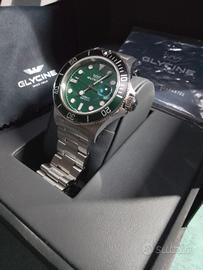 Orologio glicyne combat sub 42 mm quarz stai nel Steel case & bracelet con datario quadrante colore verde 200 atm griera girevole con il suo corredo scatolo pezzuola e spiegazioni fuori produzione acquistato 2023 fondo a vite e corona locata a vite. C