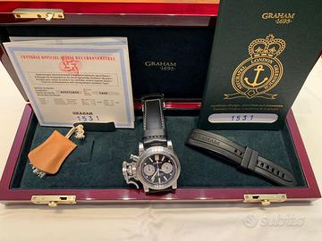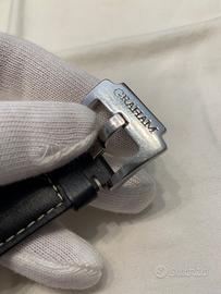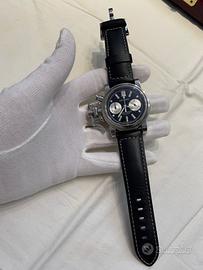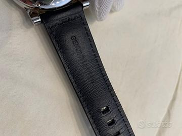 REF. 2CFAS Orologio con cassa in acciaio 43 mm cinturino in pelle nero, fibbia in acciaio. Movimento meccanico con riserva di carica automatica cal. G1722. Quadrante nero con due contatori in argento, indici bianchi e fluorescenti. Anno 2003. Orologio pari al nuovo con scatola e documenti originali.